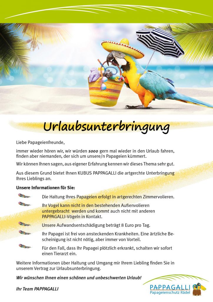 immer wieder hören wir, wir würden sooo gern mal wieder in den Urlaub fahren, finden aber niemanden, der sich um unsere/n Papageien kümmert.