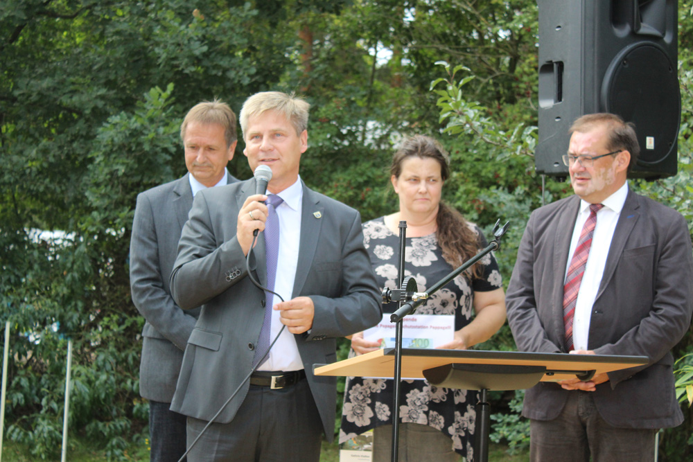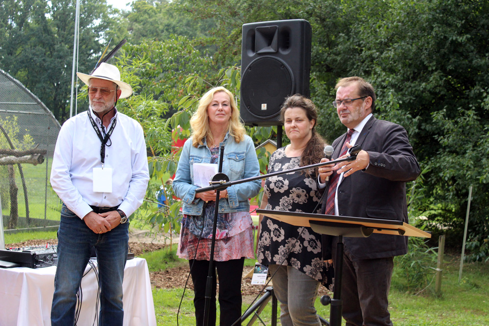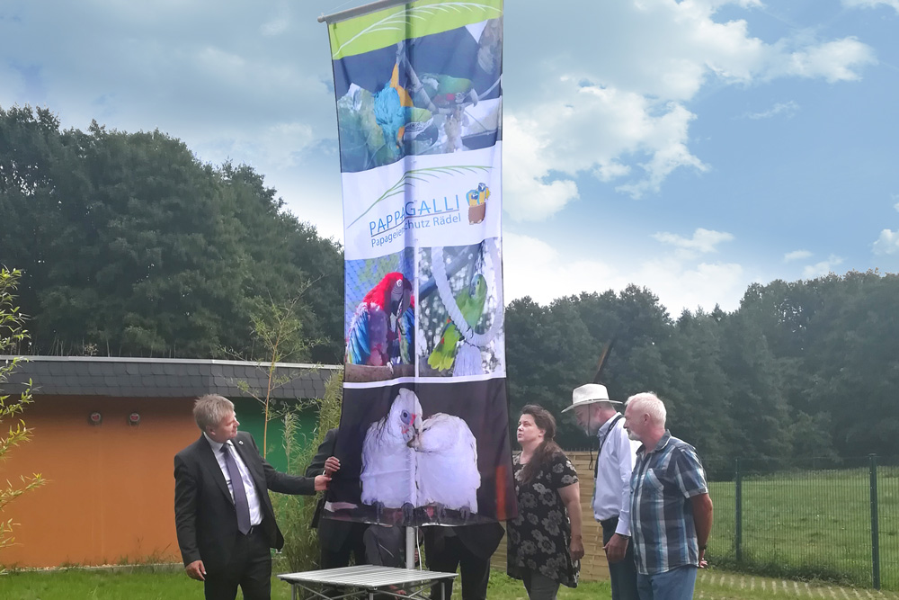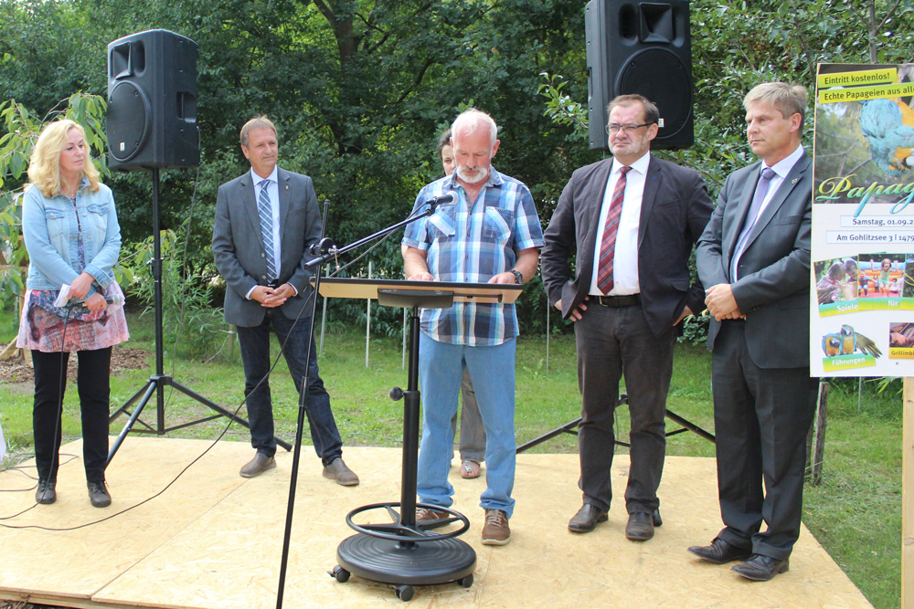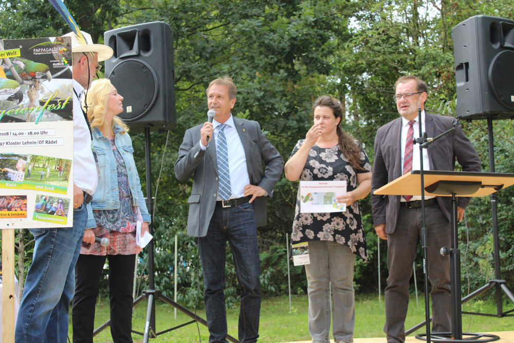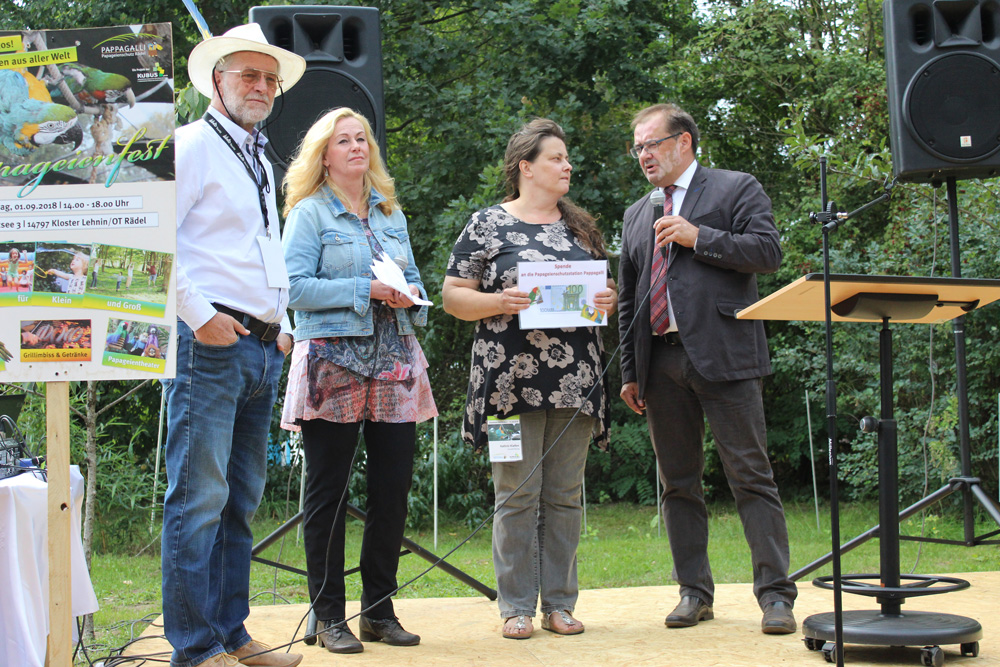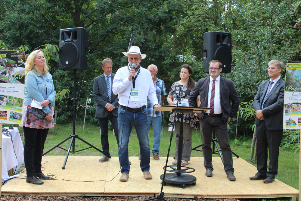 Jörg Vogelsänger, Minister für Ländliche Entwicklung, Umwelt und Landwirtschaft des Landes Brandenburg zeigte sich unglaublich beeindruckt von der Anlage und hofft, dass sich möglichst viele Unterstützer in der nächsten Zeit melden und PAPPAGALLI unterstützen. Mit gutem Beispiel wolle er voran gehen und spendete privat 100 Euro.