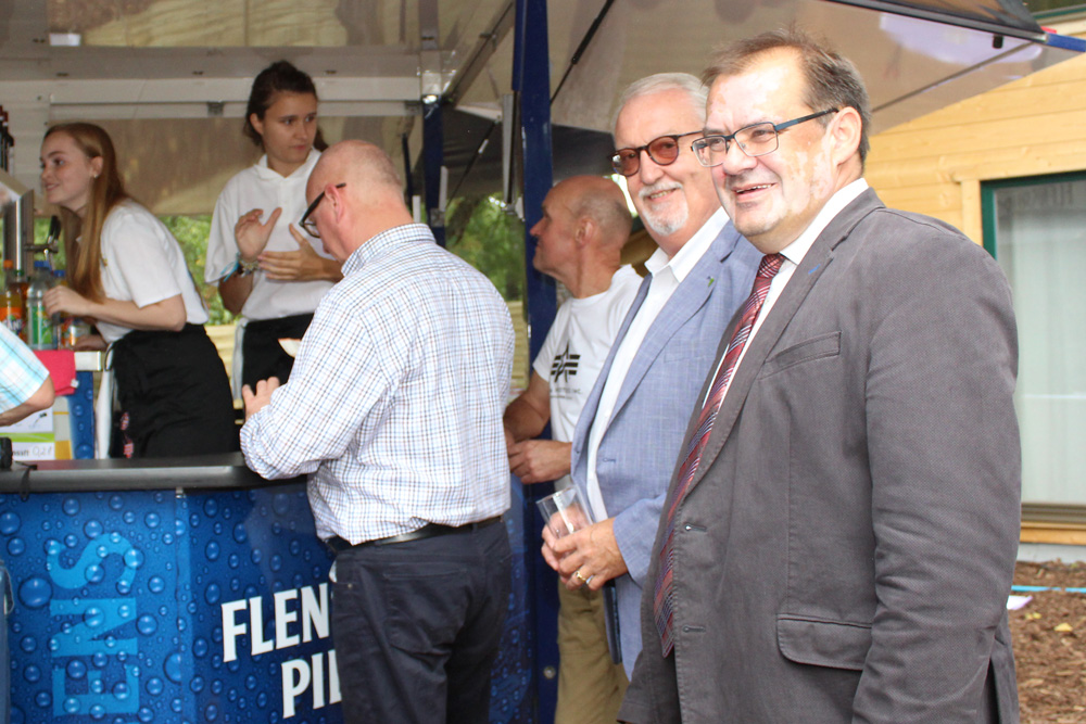 Unser Geschäftsführer Siegfried Klaßen entgegnete ebenso seinen Dank insbesondere an das Jobcenter MAIA. Durch die intensive Zusammenarbeit mit deren Kolleg*innen und mit Teilnehmer*innen aus geförderten Beschäftigungs-maßnahmen sei der Bau des Areals erst möglich gewesen.